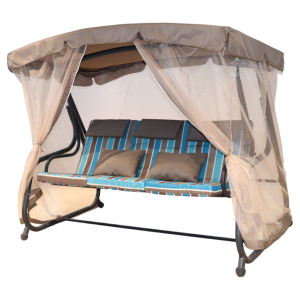 Gardex – საქანელა სკამი ბეჟი დაზოლილი, ფარდით და ბალიშით 200x120x164სმ